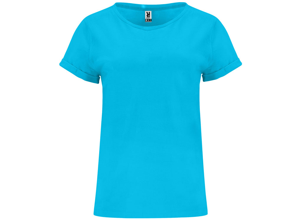 Футболка с коротким рукавом. Круглый вырез горловины отделан основным полотном. На рукавах подвороты закреплены в 4 местах.