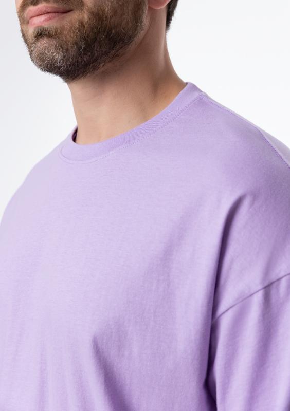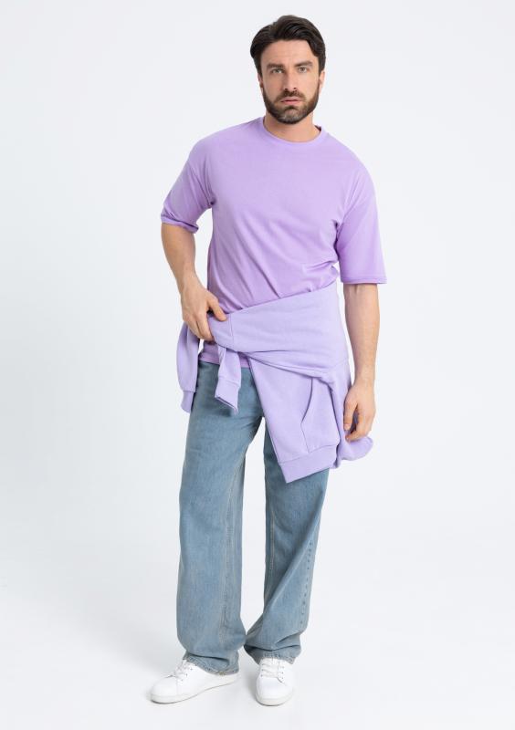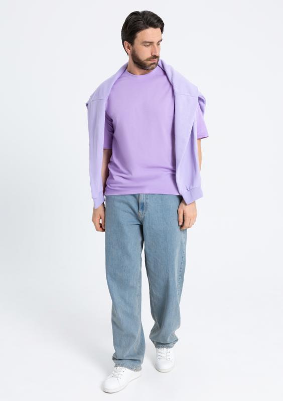 Свободная футболка силуэта-oversize с округлым воротом и спущенной линией плеча. Универсальная модель идеально впишется как в мужской, так и в женский гардероб.