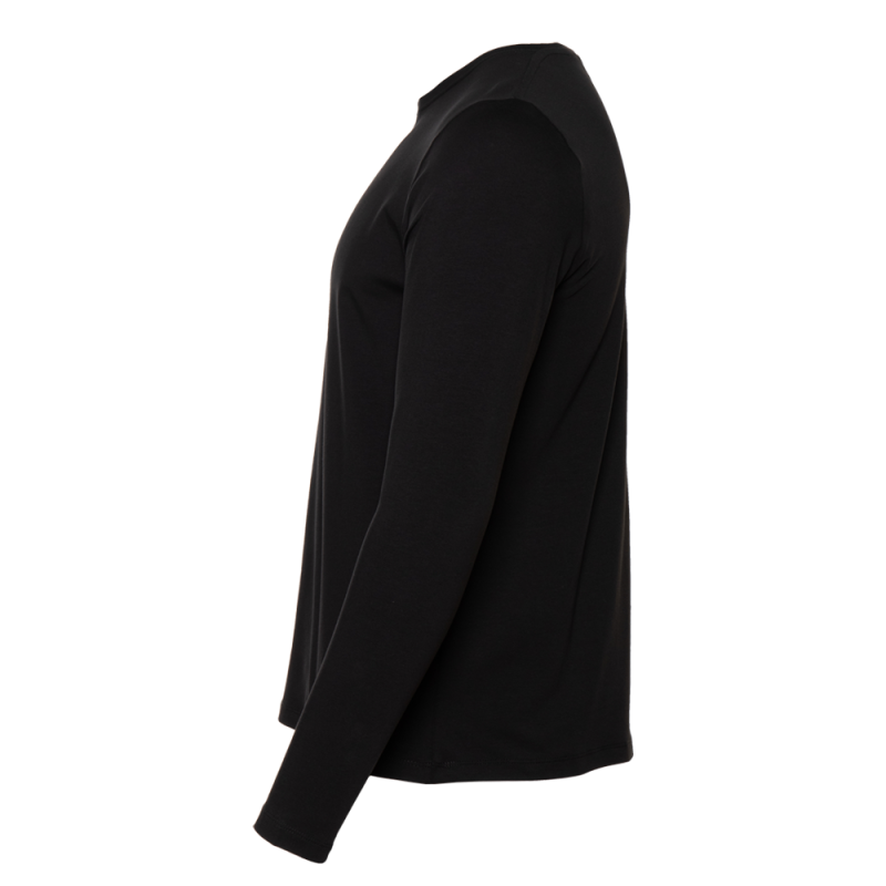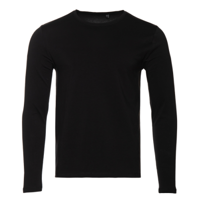 Универсальная футболка прямого силуэта с округлым воротом и длинным втачным рукавом. Плечевые швы и шов горловины усилены настрочной бейкой из основного полотна.