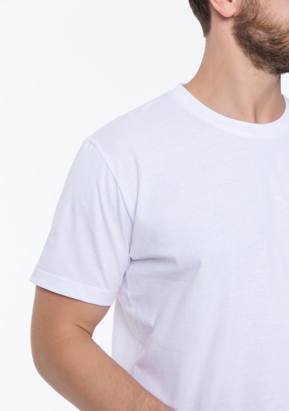 Футболка выполнена из мягкого и прочного полотна из 100% хлопка. Материал обладает отличными влагоотводящими и воздухопроницаемыми свойствами. Ткань легкая и приятная к телу.