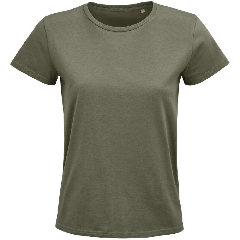 Женская бесшовная облегающая футболка из органического хлопка с круглым вырезом.