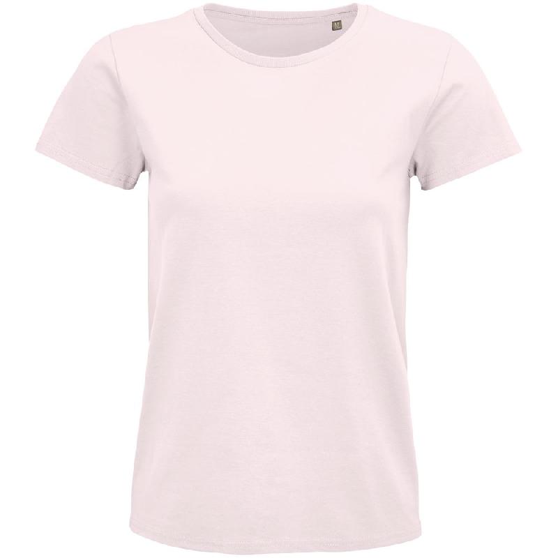 Женская бесшовная облегающая футболка из органического хлопка с круглым вырезом.