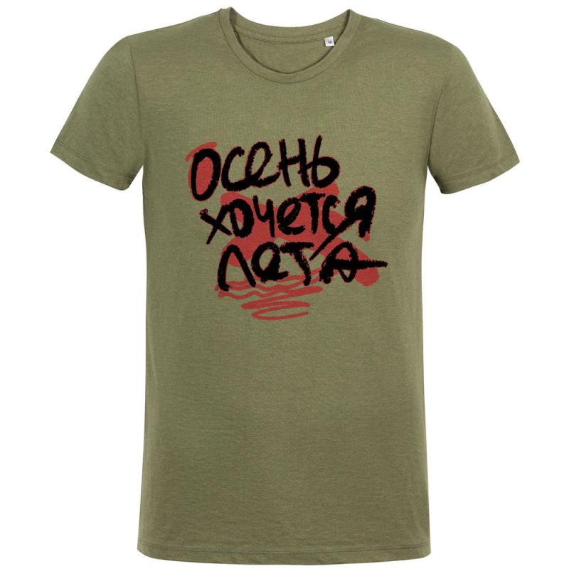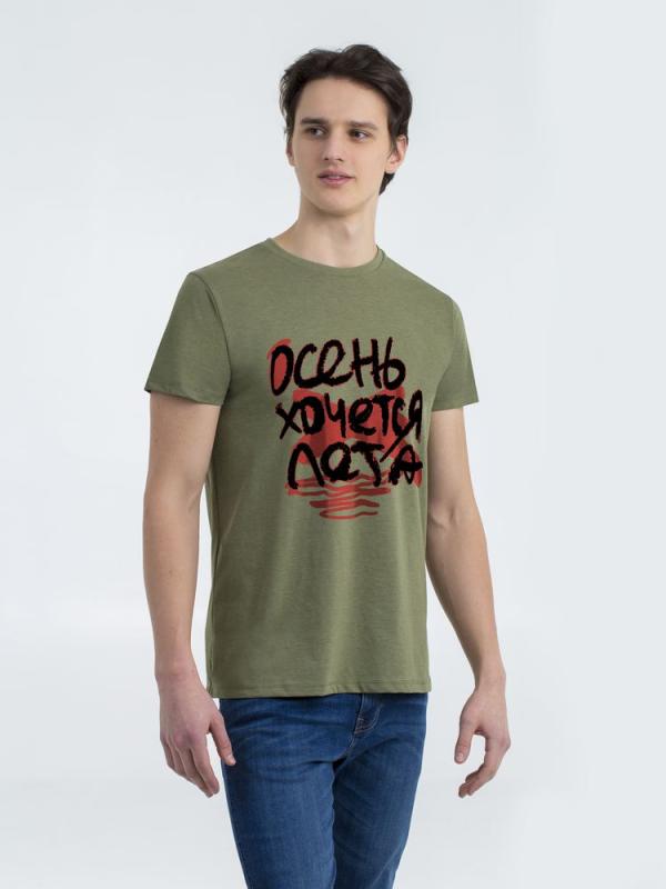 Футболка мужская приталенная «Осень хочется лета», меланж хаки, размер S