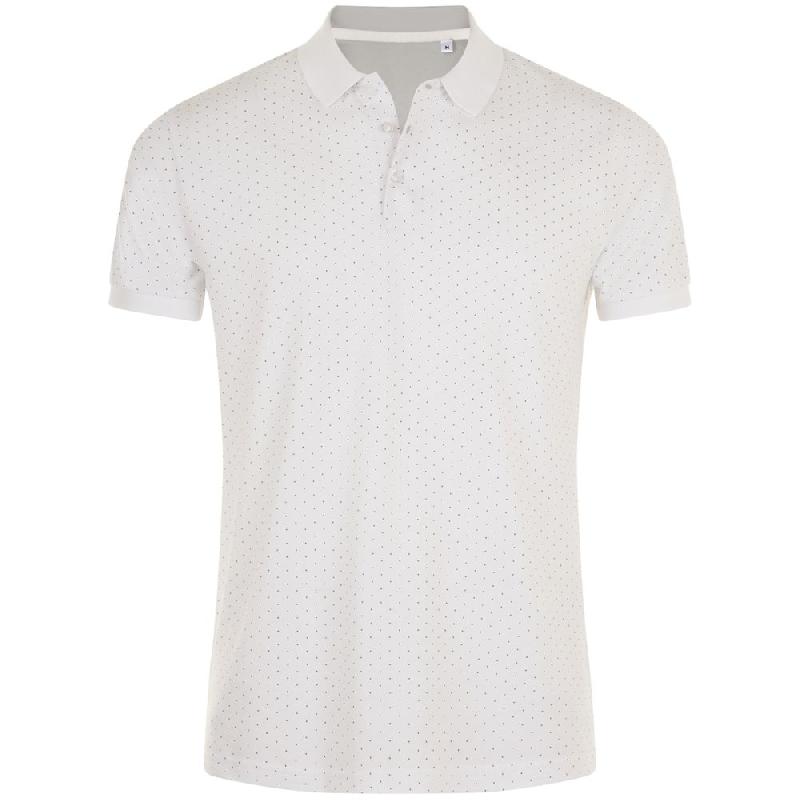 Рубашка поло приталенного силуэта с рисунком в точку. Лейбл производителя в боковом шве изнутри, в шве горловины - только бирка с размером, что позволяет вам нанести свой логотип.