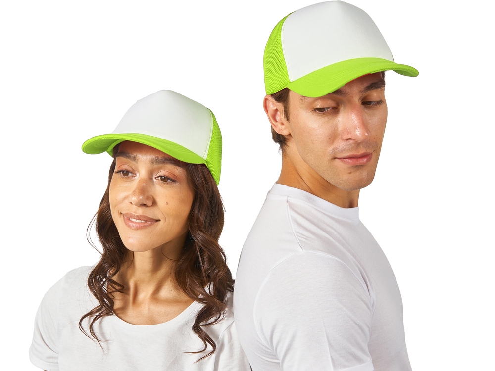 Бейсболка из 5 клиньев с мягкой сеткой. Регулируемая пластиковая застежка сзади. Передняя панель продублирована тонким поролоном.