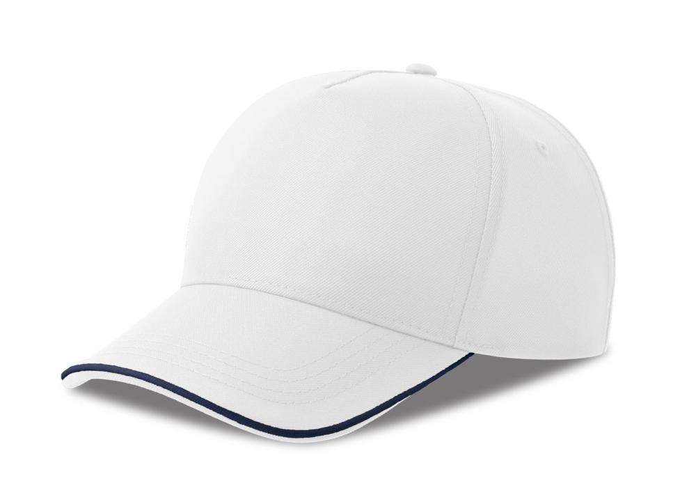 Бейсболка RECY FIVE PIPING, 5 клиньев, застежка-липучка, белый/тёмно-синий, 100% полиэстер, 220 г/м2