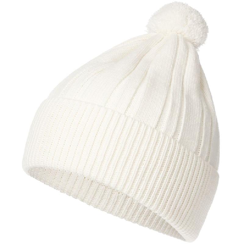 Однослойная шапка фактурной вязки с помпоном и широким отворотом.