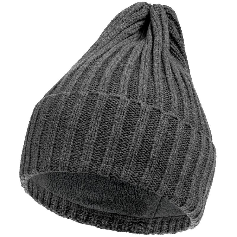 Однослойная шапка фактурной вязки с флисовой подкладкой.