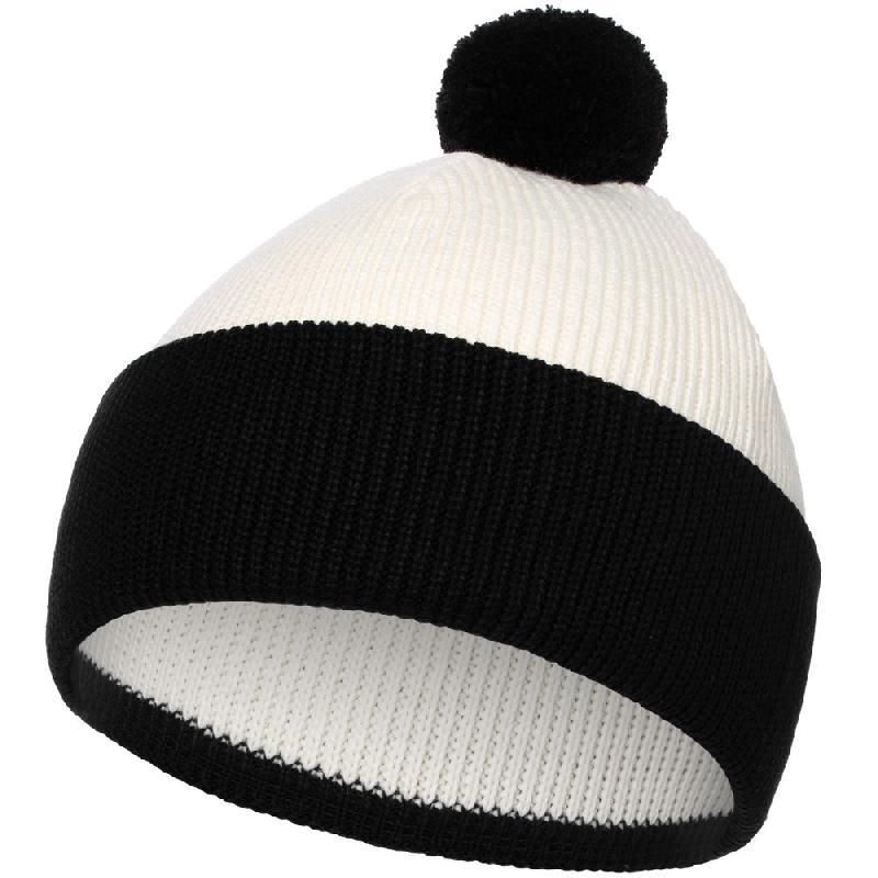 Двуслойная шапка фактурной вязки с контрастным подворотом и помпоном.