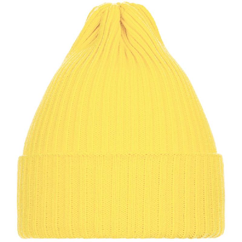 Однослойная шапка фактурной вязки с двойным отворотом.