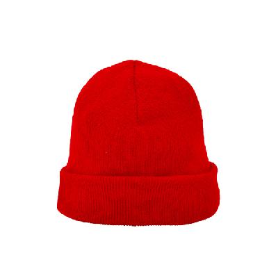 Трикотажная шапка из акрила с двойным отворотом внизу.