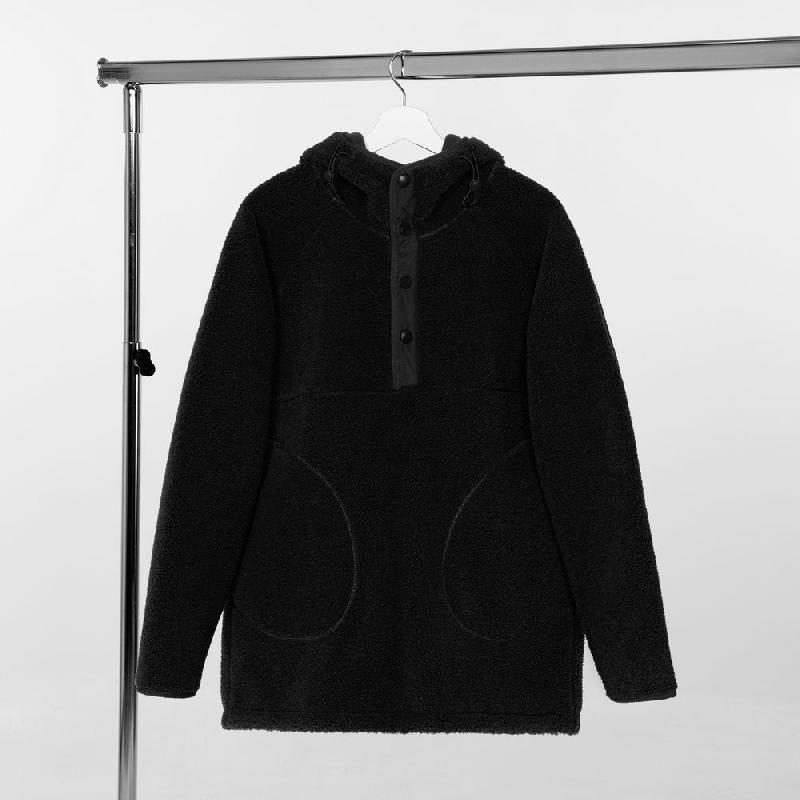 Анорак с капюшоном из современного двухслойного материала— искусственный мех снаружи, флис внутри.