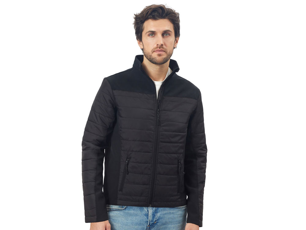 - гибридная конструкция из 2 видов материалов – софтшелл гарантирует ветронепроницаемость и легкость, а стеганные вставки добавляют утепления.