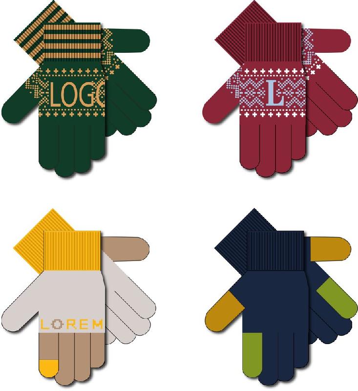 Модель: цельновязанные бесшовные перчатки с эластичной манжетой и жаккардовым узором в 2-3 цвета. Манжета может быть полосатой (горизонтальные полосы 1-2 цветов, без узора и логотипа).