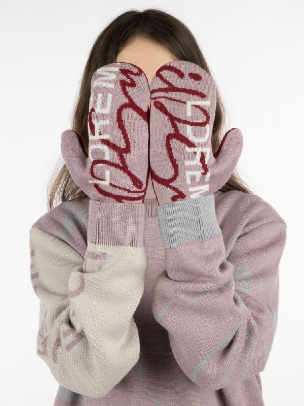 Варежки с вывязанным логотипом и индивидуальным рисунком в фирменной цветовой гамме.