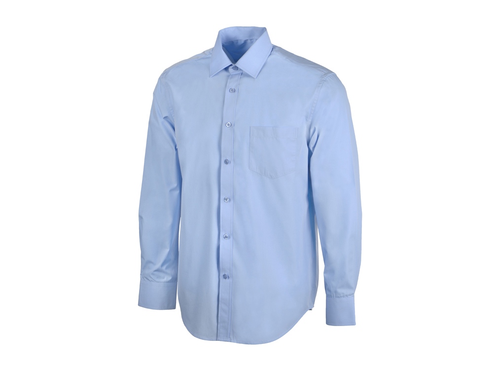 Рубашка мужская с длинным рукавом на семи пуговицах. Накладной карман на груди слева, на спинке складки из-под кокетки, манжеты с двумя пуговицами и пуговица по планке рукава.