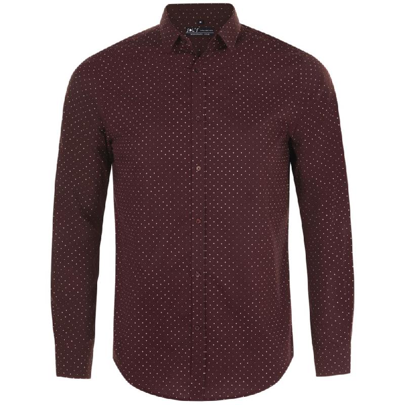 Модная рубашка с печатным рисунком в горошек, которая прекрасно впишется в современный корпоративный стиль.Облегающая модель с маленьким классическим воротничком, планкой с 7 пуговицами тон в тон и манжетами на 1 пуговице с разрезом «капуцин».