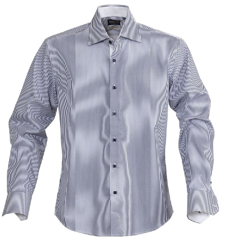 Мужская сорочка современного приталенного кроя из гребенного хлопка качества Easy Care (легко утюжить). Классический узор в полоску с контрастной отделкой оборотной части воротника, изнанки манжет и планки пуговиц. Упрочненные швы воротника и манжет.