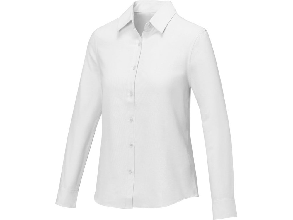 Pollux женская рубашка с длинными рукавами. Отрывной-отрезной лейбл. Регулируемая манжета рукава с одной складкой. Пуговицы в тон. Встречная складка на спинке. Ткань Оксфорд 55% хлопка, 45% полиэстера, 130гр.