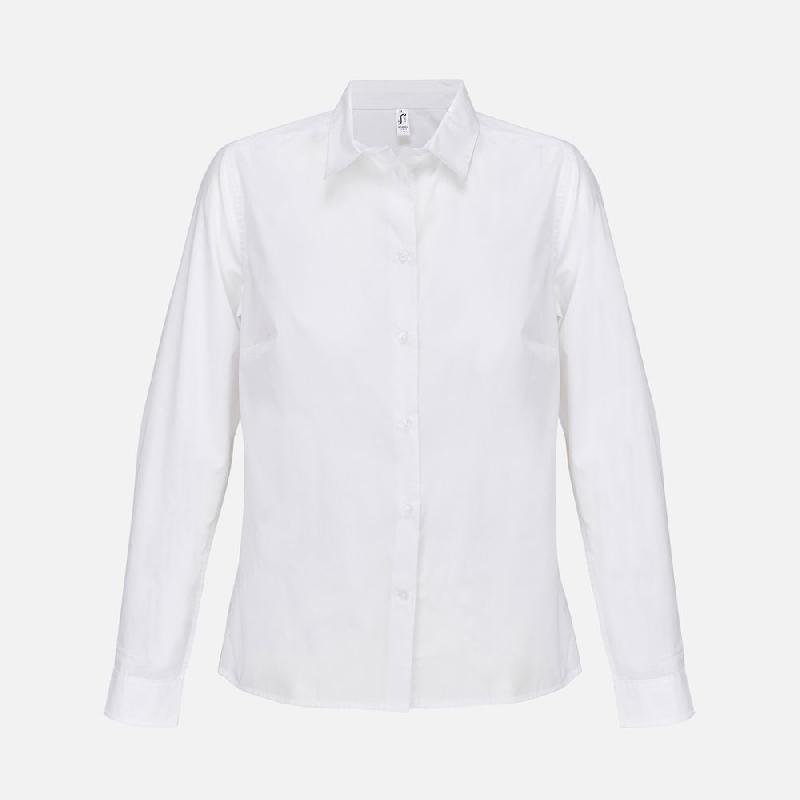 Классическая женская рубашка приталенного силуэта. Выполнена из ткани поплин, благодаря чему она приятна на ощупь, хорошо держит форму и меньше мнется. Идеальный вариант для повседневного использования.