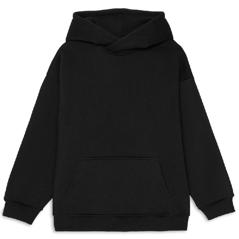 Детское худи унисекс со спущенным плечом и карманом-кенгуру.