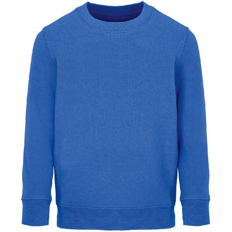 Детский свитшот из хлопка и переработанного полиэстера с круглым вырезом и втачным рукавом.