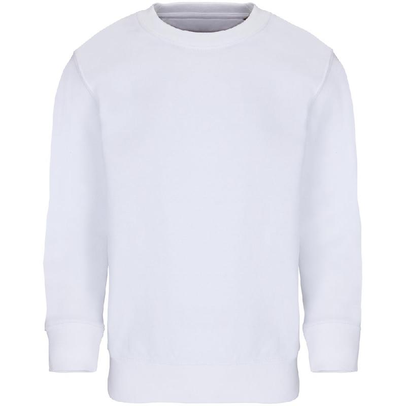Детский свитшот из хлопка и переработанного полиэстера с круглым вырезом и втачным рукавом.