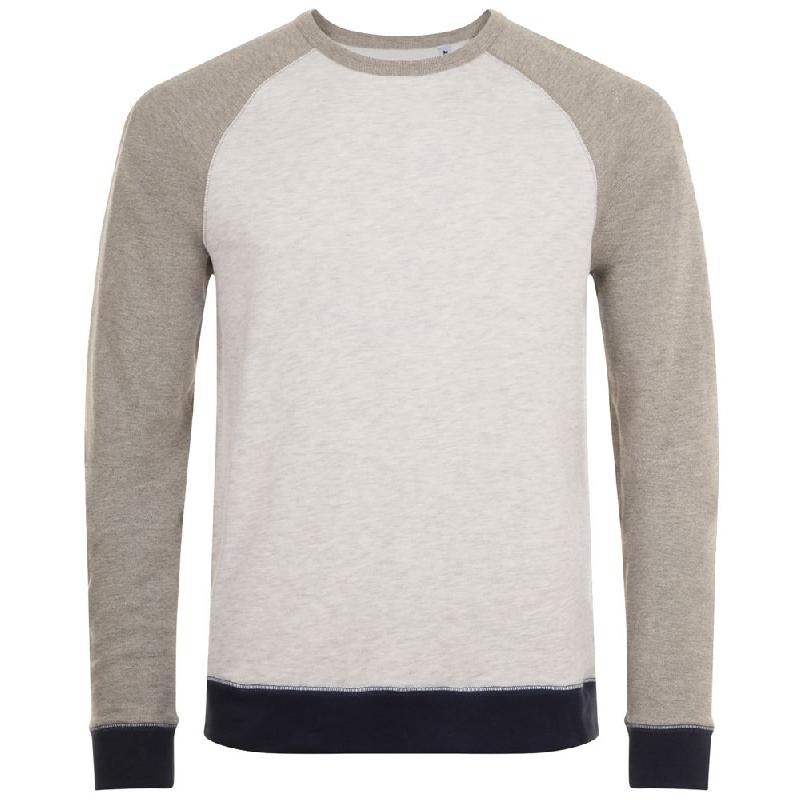 Трехцветный свитшот в стиле 80-х с рукавом реглан. Лейбл производителя в боковом шве изнутри, в шве горловины — только бирка с размером, что позволяет вам нанести свой логотип.