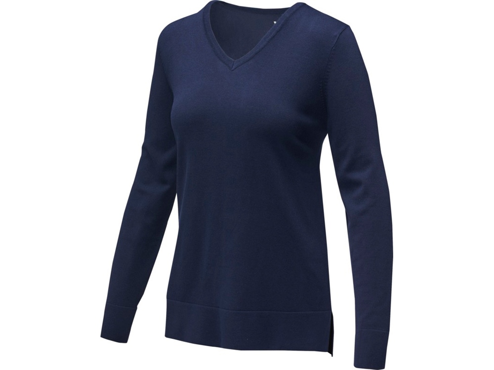 Женский пуловер Stanton. V-образный вырез. Воротник из гладкого трикотажа. С манжетами из гладкого трикотажа в рубчик. С подшивкой из гладкого трикотажа в рубчик. Удлиненный задний подол с боковыми прорезями. Атласная лента на воротнике Основная этикетка нанесена на ткань методом термоприклеивания без неудобных пришитых ярлыков. Придающие форму швы и зауженная талия для ровного прилегания.