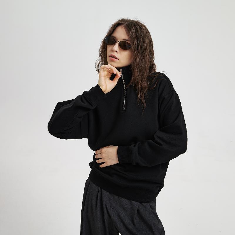 Универсальная толстовка с воротником-стойкой и заниженной линией плеча. По нижнему краю и на рукавах — эластичные резинки для комфортной и аккуратной посадки. Модель застёгивается на металлическую молнию.
