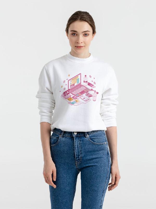 Толстовка унисекс с втачными рукавом. Изнанка: мольтон с начесом. Укрепляющая тесьма по вороту, манжеты, ворот и низ толстовки связаны резинкой с эластаном.