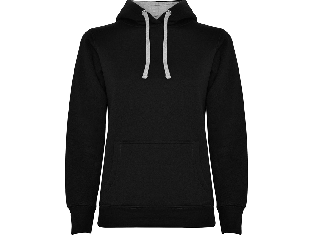 Худи с капюшоном и шнурками. Отделка горловины спинки внутри тесьмой, Риб 1х1 по низу изделия и манжетам. Карман кенгуру. На манжетах вырез под большой палец