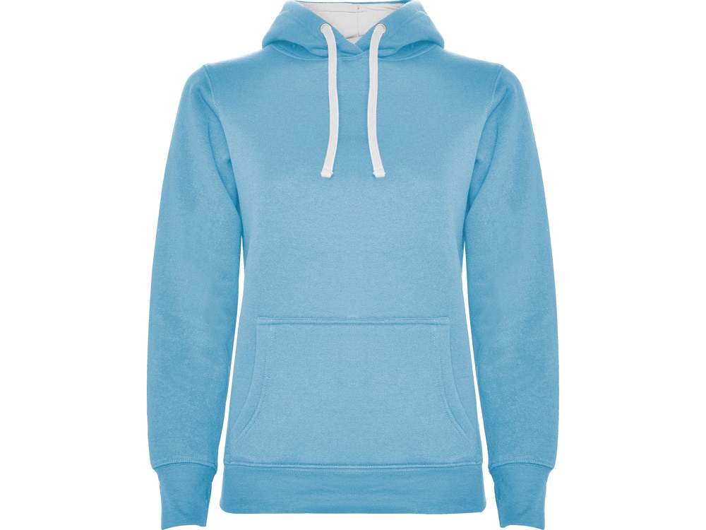 Худи с капюшоном и шнурками. Отделка горловины спинки внутри тесьмой, Риб 1х1 по низу изделия и манжетам. Карман кенгуру. На манжетах вырез под большой палец