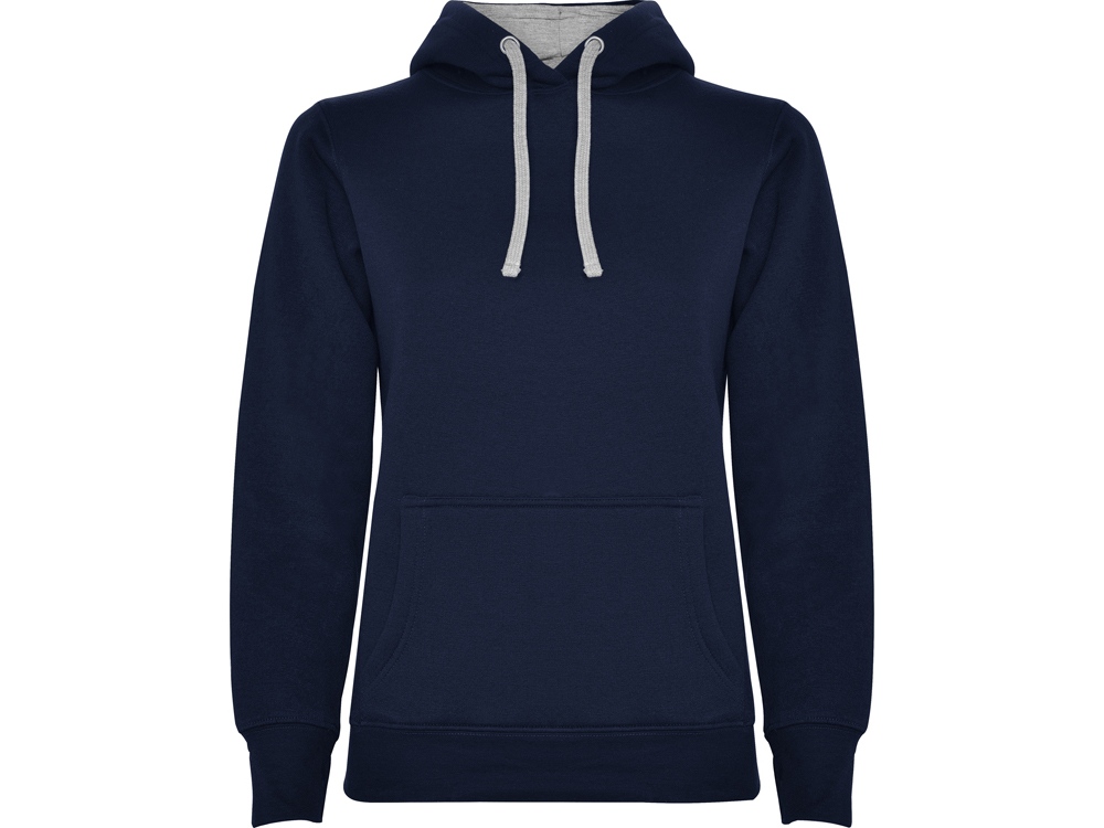 Худи с капюшоном и шнурками. Отделка горловины спинки внутри тесьмой, Риб 1х1 по низу изделия и манжетам. Карман кенгуру. На манжетах вырез под большой палец