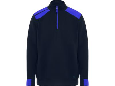 Толстовка с воротом- стойкой на молнии с сочетанием двух цветом. Половина манжет и низ изделия из рибового полотна 1х1. Укрепляющая отстрочка по внутреннему воротнику. Контрастные плечи , детали, молния и манжеты