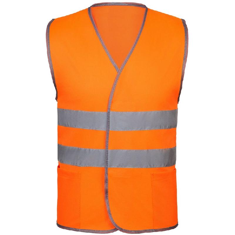 Светоотражающий жилет с застежками-липучками и двумя карманами.