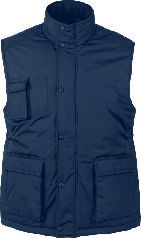 Жилет унисекс из ткани «рипстоп». Высокий воротник на кнопках, на подкладке из флиса. Расстегивается при помощи молнии и кнопок.