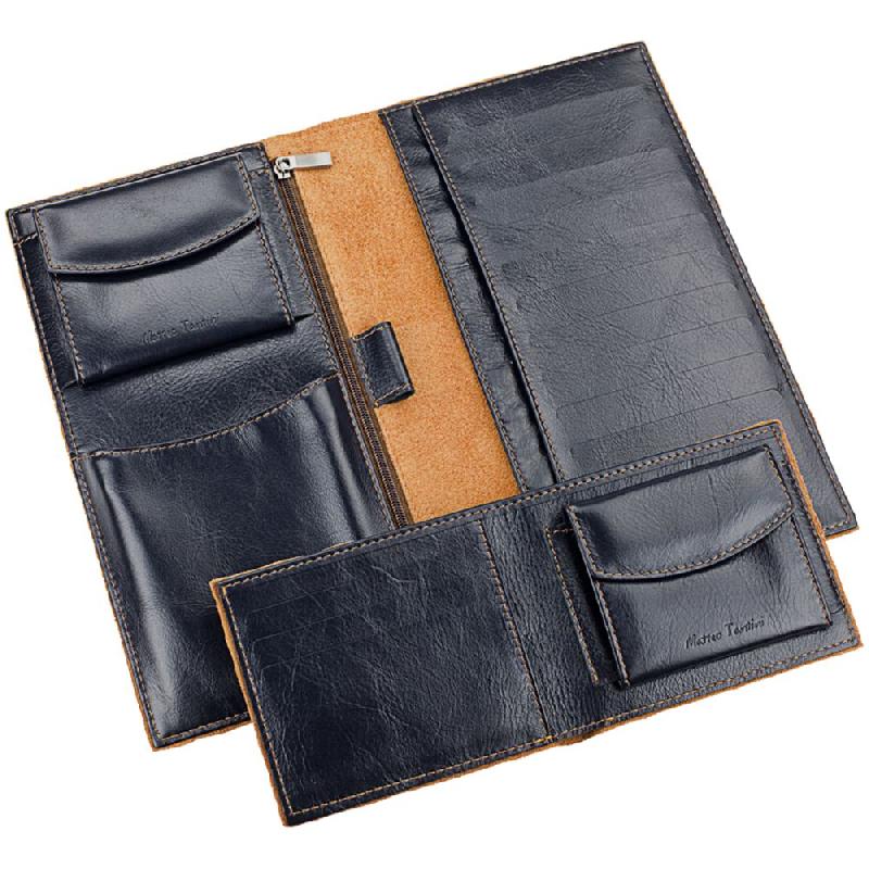 Изделия линейки Palermo изготовлены из гладкой кожи глубокого синего цвета с контрастной отделкой из замши. Оформленные в едином стиле, они легко собираются в подарочные наборы.