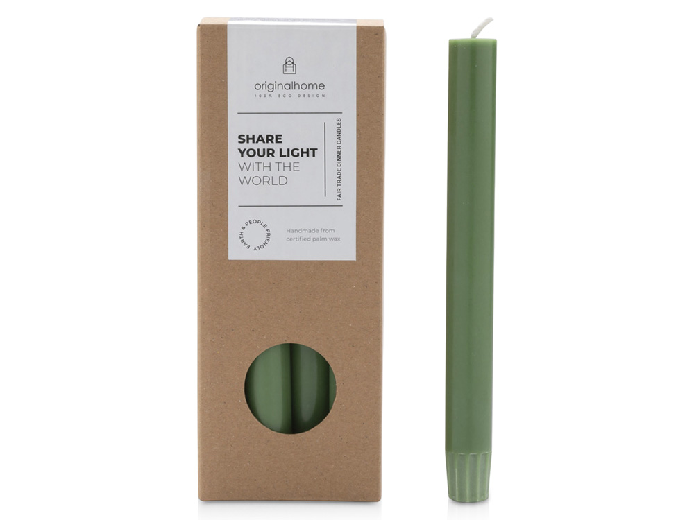 Столовая свеча от Originalhome на 100% натуральная и изготовлена вручную из сертифицированного пальмового воска. В комплект входят 10 свечей без запаха, упакованных в подарочную коробку. Каждая свеча горит примерно 7-8 часов.