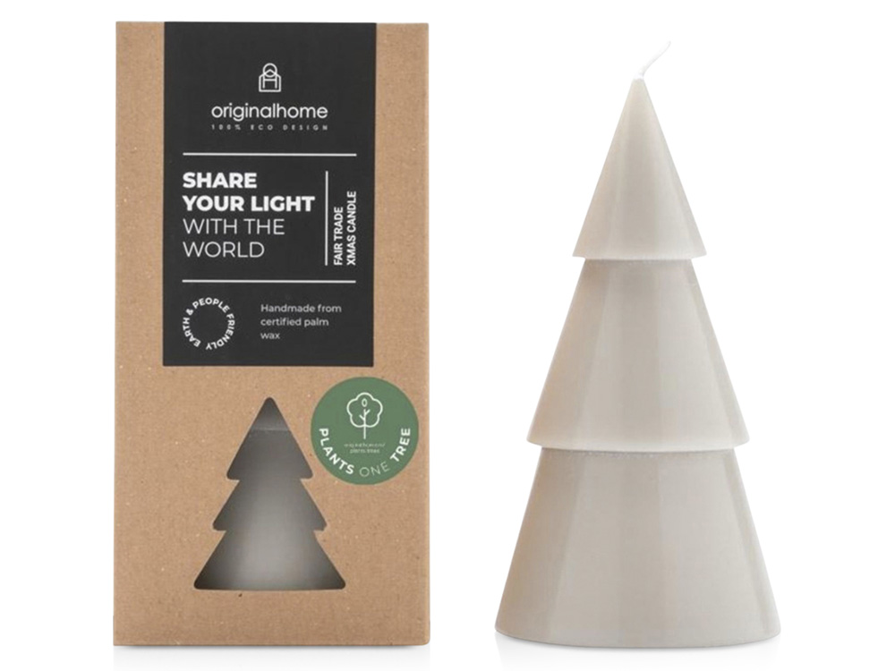 Большая свеча без запаха в виде елки от Originalhome на 100% натуральная и изготовлена вручную из сертифицированного пальмового воска. Это идеальный рождественский подарок для всех, с кем хочется поделиться светом и теплом. Свеча горит примерно 29-32 часа. Palm kernel wax.