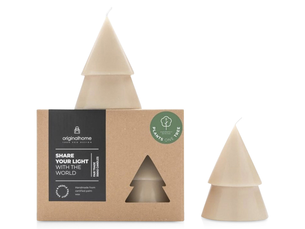 Свеча без запаха в виде елки среднего размера от Originalhome на 100% натуральная и изготовлена вручную из сертифицированного пальмового воска. Это идеальный рождественский подарок для всех, с кем хочется поделиться светом и теплом. Свеча горит примерно 15-17 часов. Palm kernel wax.