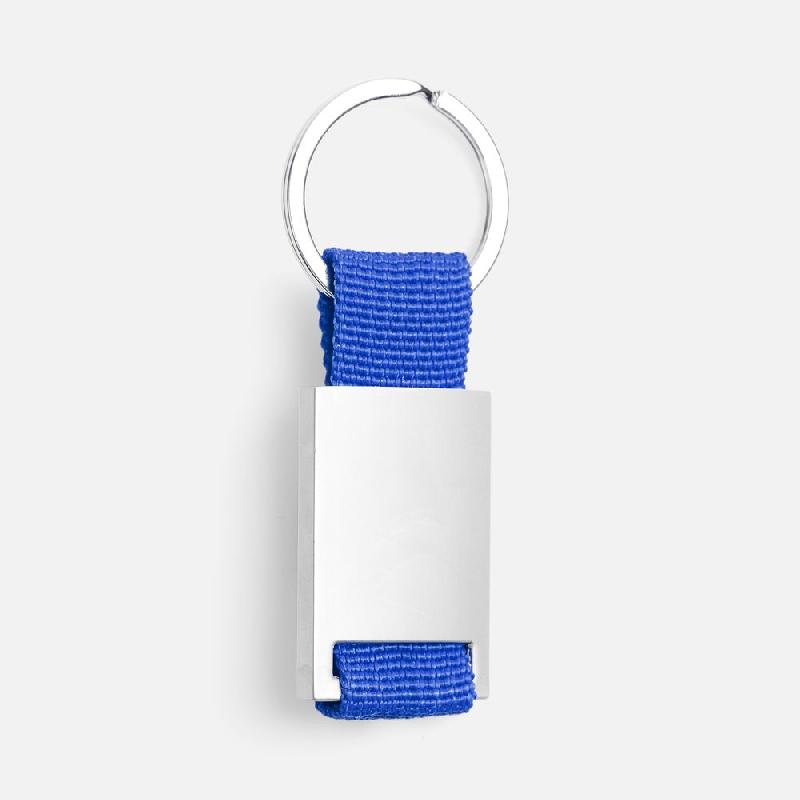 Минималистичный металлический брелок с тканевой вставкой.