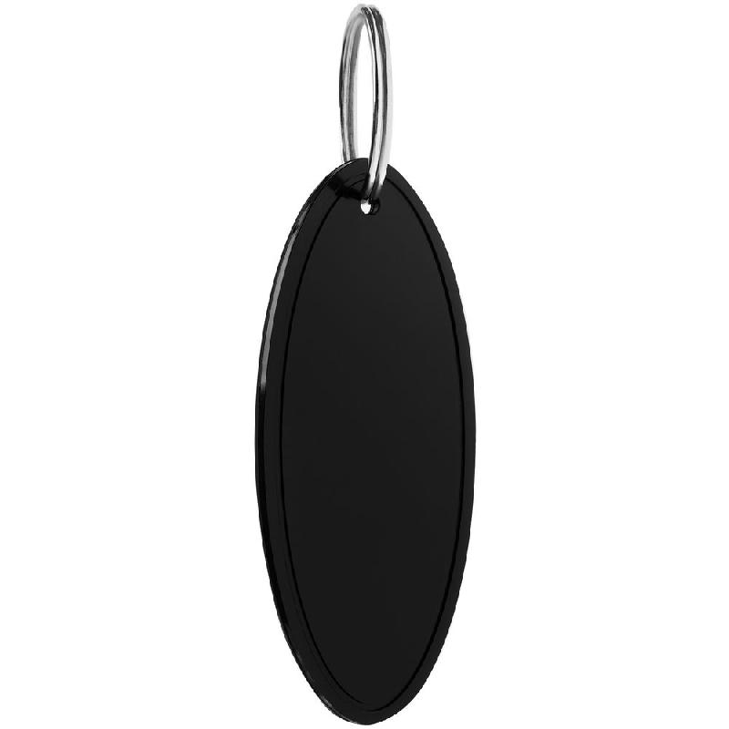 Лаконичный брелок из полипропилена с металлическим кольцом.