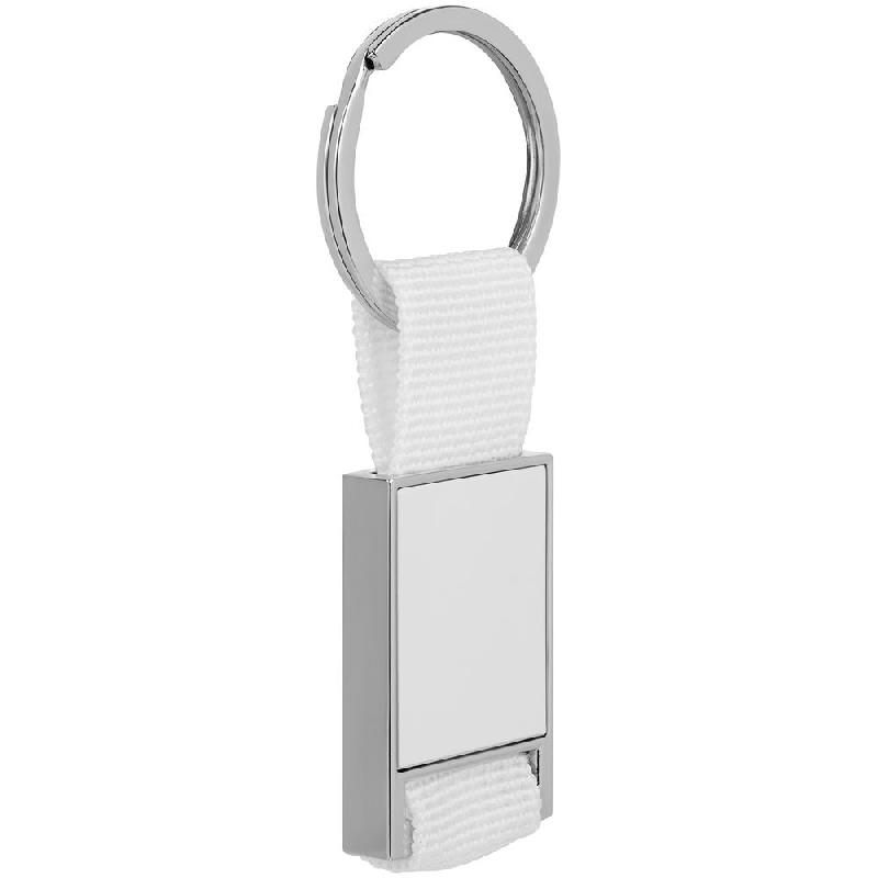 Элегантный металлический брелок с тканевой вставкой.