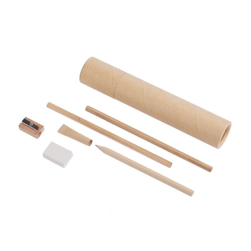 Канцелярский набор включает 5 предметов в тубусе из картона вторичной переработки. С таким набором вы точно не потеряете свои письменные принадлежности!