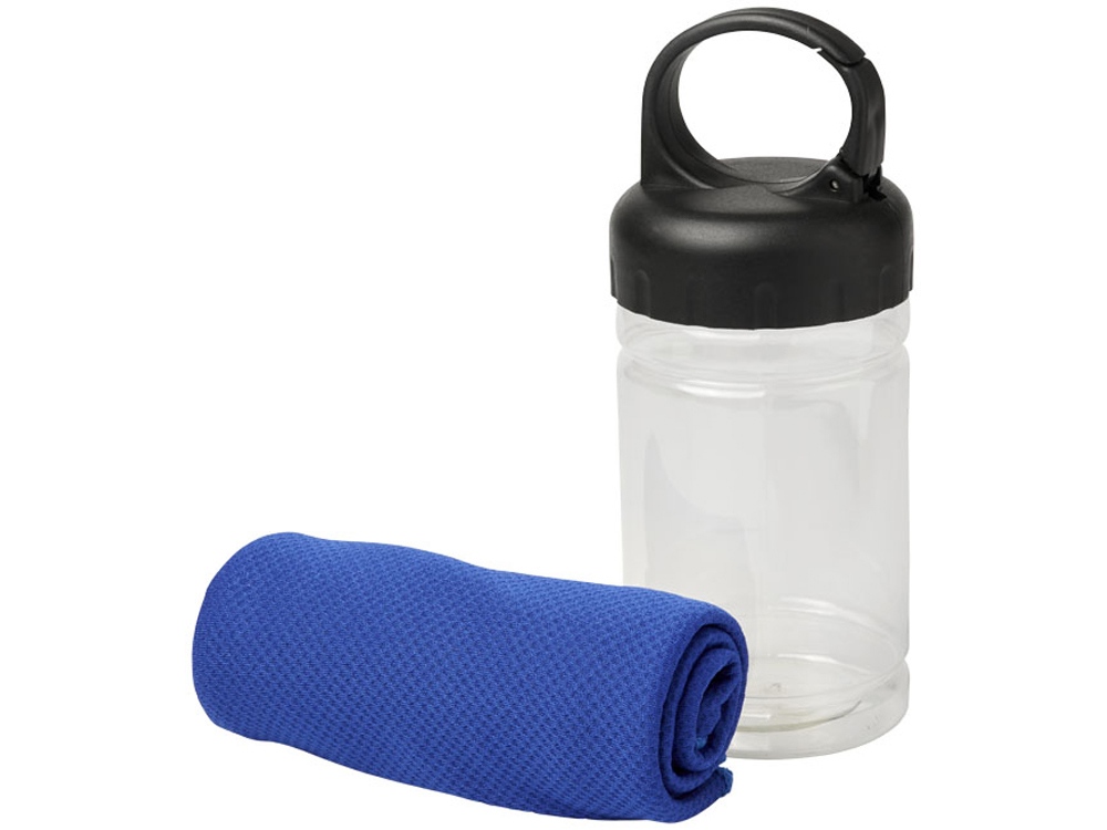Охлаждающее полотенце Remy в ПЭТ-контейнере. Быстро впитывающее, быстро сохнущее и стираемое охлаждающее полотенце сохраняет прохладу во время тренировок или любых других занятий на свежем воздухе. Поставляется в ПЭТ-контейнере с ручкой и встроенным карабином для удобной переноски. Доступно в 5 ярких цветах. На контейнере изображен большой логотип, он также может быть и на самом охлаждающем полотенце. Размер: 30 x 80 см. PET. 0,096.