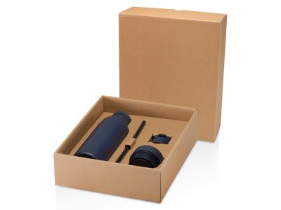 В этот подарочный набор входит бутылка объемом 650 мл с двойными стенками и вакуумной изоляцией, изготовленная из сертифицированной согласно RCS нержавеющей стали с медным покрытием для лучшего поддержания температуры.
