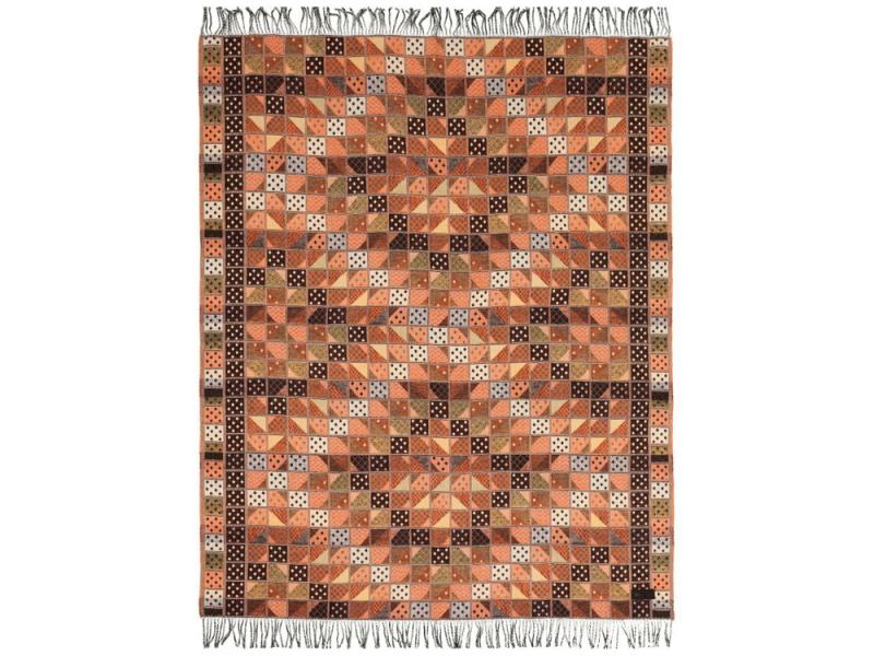 • Плед в стиле пэчворк украшен бахромой, оригинальный дизайн органично впишется в интерьер и станет стильным украшением вашего дома. Постелите плед на диван или на кровать, возьмите с собой на дачу или используйте плед-покрывало в кресле-качалке.
