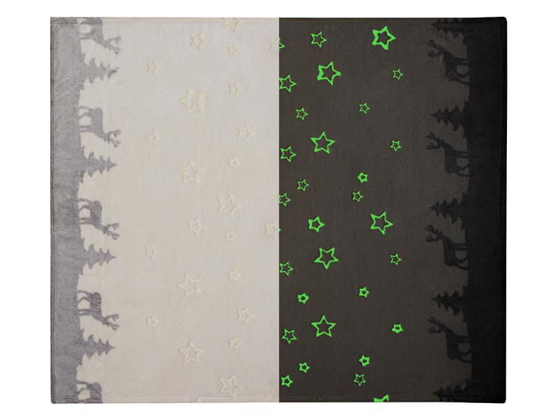 Размер 130х150 см, мягкий приятный на ощупь флис, новогодний принт светится в темноте, создаст уютную обстановку дома, подойдет под любой интерьер, согреет в прохладную погоду.