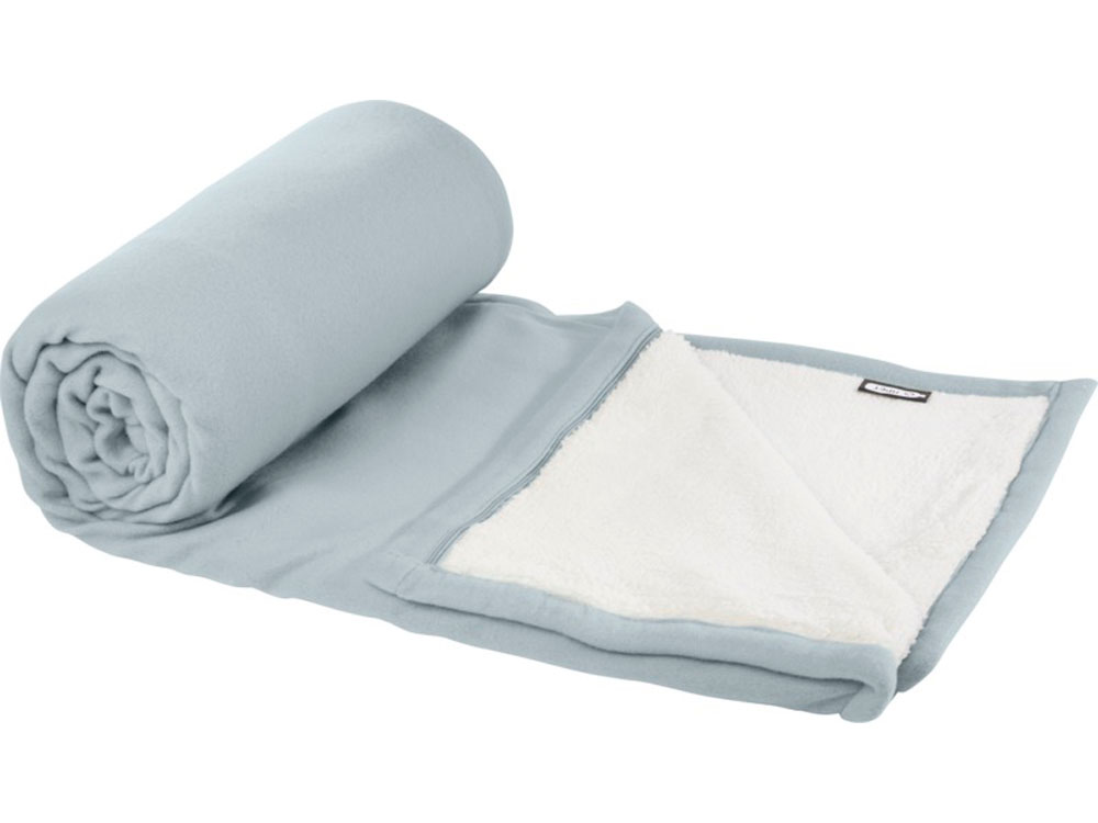 Ультрамягкий плед из флиса из вторичного ПЭТ и искусственного меха, 180 г/м2. Флис100% переработанный полиэстер. Поставляется с сумкой для переноски из вторичного ПЭТ 190T с застежкой на шнурке. Размер сумки d18 х 40 см. Упаковано в полиэтиленовый пакет из переработанного материала.